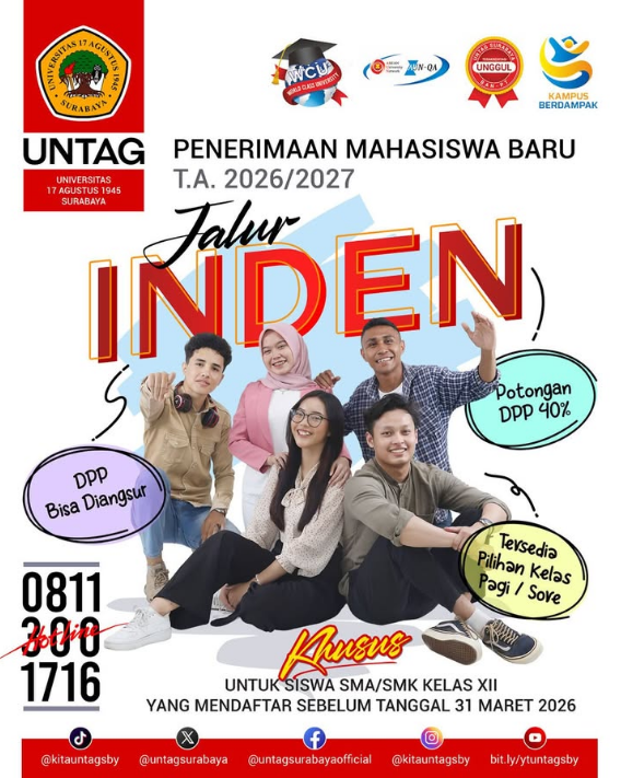 Arah pengembangan Untag Surabaya pada 2026 juga ditegaskan mengacu pada target institusi di tingkat Asia. untag kini memasuki milestone keempat periode 2025-2029, dengan tiga indikator utama perguruan tinggi akademik, yakni lulusan yang memiliki kompetensi khas sebagai daya saing, kurikulum yang relevan dengan kebutuhan pasar, serta metode pembelajaran yang adaptif terhadap perkembangan zaman.